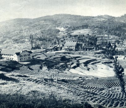许多年前,人们发现隆昌城西的山头上每夜都有很大的火光,经久不灭。迷信的人认为这是神仙点的灯,“圣灯山”的名字就由此而来。其实,这不过是自然燃烧的天然气。图为圣灯山的白昼。(1958年)