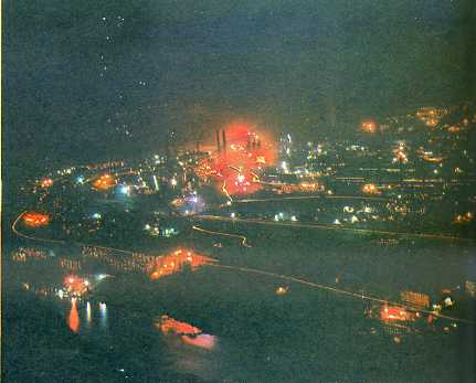 攀枝花铁矿的钻机还在金沙江河谷继续钻进。已经探明的储量有5亿吨左右,矿石含铁量在40%以上。(1957年)
