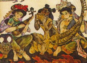 彭蠡 《龟兹伎乐图》(局部)。彭蠡,1935年生,四川简阳人。1956年毕业于四川美术学院,同年到西安美术学院任教,后为西安美术学院教授。