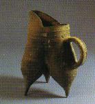 黑陶鬶,高21.4厘米。(注:鬶,古代陶制炊具,嘴象鸟啄,有把柄和三个空心的短足。)