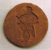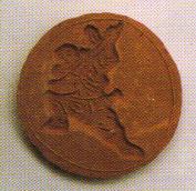 泥模《水浒人物:李逵》。泥模作为民间玩具,曾在河北、河南、北京、山西、山东等地广为流传。其样式有圆形、椭圆形和长圆形敞口等数种,大小一般在5厘米,可供儿童在游戏时模拟做“点心”用,而其图文并茂的内容形式也有助于儿童的启蒙。有学者认为泥模起源于宋代,似从饼模演化而来,但从出土的有关陶瓷和金属的范模来看,年代可能还更早一些。滨州地区流传的泥模以圆形的为多,花样多是传统的戏曲、民间传说、童话故事和飞禽走兽、花卉等吉祥纹样,约有千余种。如今,这样的泥模已不再制作,遗留下来的更显得珍贵。