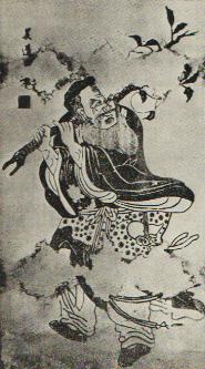 (金)《东方朔盗桃》印本。“海上有蟠桃,三千年霜熟,一千年开花,一千年结子,东方朔尝三盗此桃矣。”民间年画中尝以此题材象征长寿。原画为1973年陕西省博物馆在整修“石台孝经”时发现的。