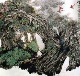 鲁风《唯大乃容》1998年。鲁风,1939年出生,山东鄄城人。1964年毕业于贵州大学艺术系。1980年调入贵州国画院专事花鸟画创作。任贵州国画院艺术委员会主任、贵州美术家协会顾问。