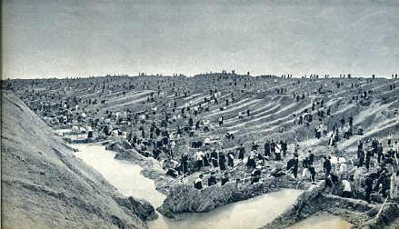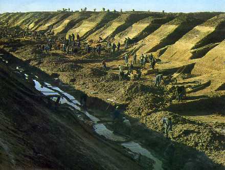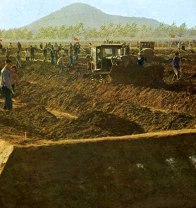 修建中的邹县崇义岭工农友谊渠,完工后可浇三千亩岗地。这是其中的隧洞,全长三千一百米。