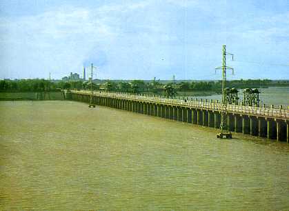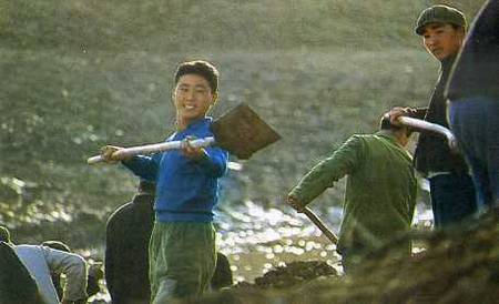 微山、嘉祥等四县的几万农民正在进行分洪除涝工程,将把微山湖水引入运河。(1958年)