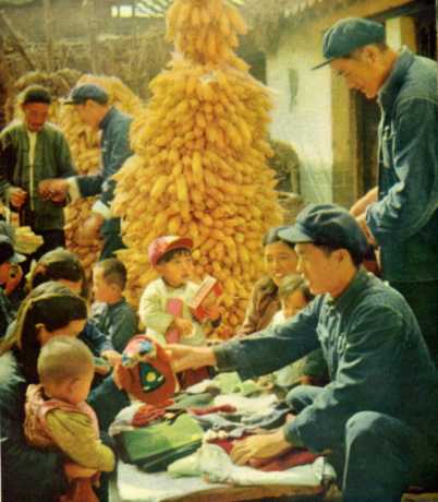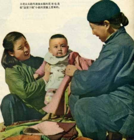 王老太太给外孙做衣服的花布是从“送货下乡”小组的货摊上买来的。