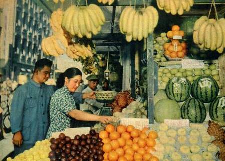 我国的水果出产极丰。这是上海一个普通的水果摊。