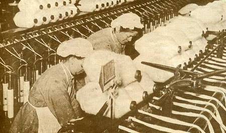 占上海全市工业比重最大的是棉纺织工业。图为中国纺织公司的一部。