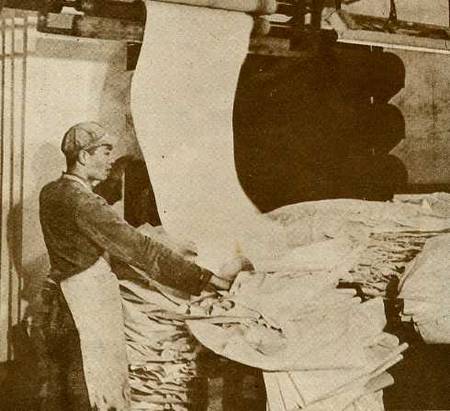 上海烟草公司切叶车间的旋转式切叶机,把发酵后的烟叶切成烟丝。
