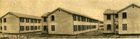 这是在曹家渡工厂区兴建的“曹杨新村”工人住宅。第一批工程建筑两层楼房167幢,可容5口之家1000余户居住。住宅内水电、卫生设备齐全。此外边有大草地、小学校、诊疗所、合作社等。第一批工程预计在1952年2月左右全部完工。