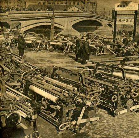这是无锡的织布厂向中国纺织机器制造公司订制的织布机,停放在苏州河的码头待运。由于内地市场的扩大,上海的机器工业都在迅速发展中,不少工厂已经接到3个月到1年的订货。
