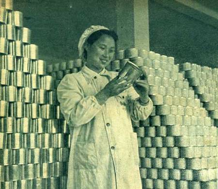 上海益民第一厂制成的大量食品罐头正待装箱运到各地去。