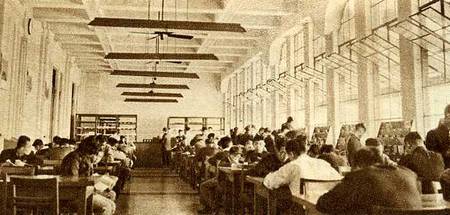 上海市人民政府把过去跑马厅大厦的一部分加以修整,改成一个图书馆—上海图书馆。该馆共有6个阅览室,可容读者1000多人。馆内藏书共70多万册,图为该馆的杂志阅览室。