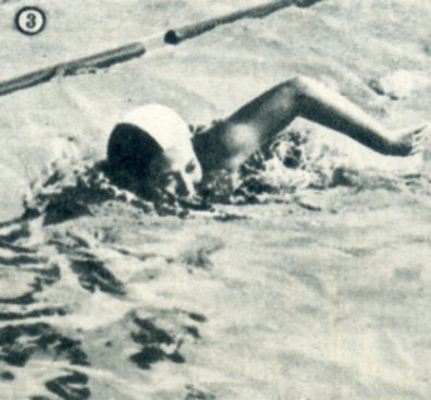 女子100公尺自由泳第一名上海队黄莲华。以上三项成绩都打破了全国纪录。