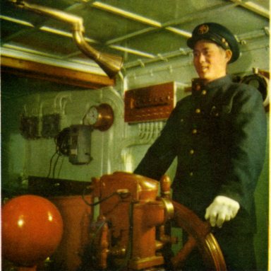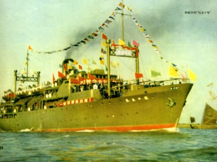 我国自己制造的第一艘新海轮“民主十号”(1956年)