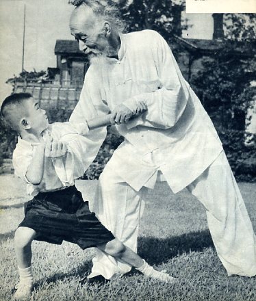 和小孙子较量武术。