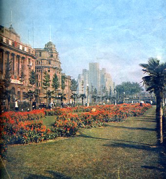 外滩大马路,如今绿树成荫,鲜花遍地。