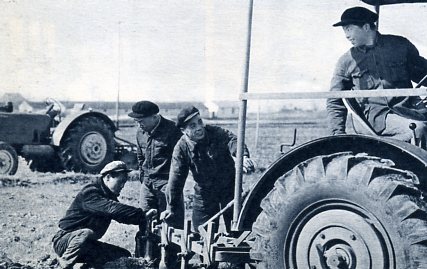 公兴动力机厂的工人(中间二人)在金山县拖拉机站。