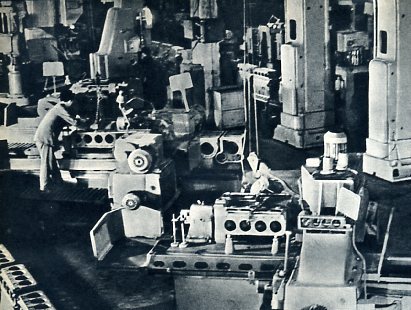 上海柴油机厂职工自己设计制造的柴油机体生产流水线。