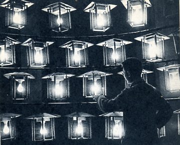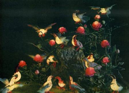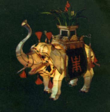 农历正月十五为我国传统的元宵节,在节日前后张灯放花是我国古老的风俗。上海一位老艺人何克明和他的徒弟萧品章擅于扎制各种种飞禽走兽,由于注意解剖原理且能巧妙地配以花木假山,因而尤为精致逼真。