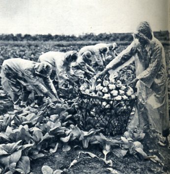 为了保证供应城市人民需要,雨天也收摘蔬菜。