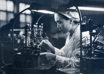 上海宝石轴承厂的精加工车间,该厂生产的人造宝石轴承是精密仪表不可缺少的零件。