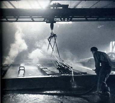 酸洗工段装上了工人自制的吊车后,代替了人力搬运,并且防止受酸液腐蚀。