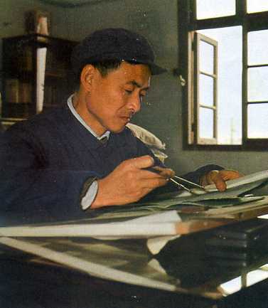 金属切削交流队队员、老工人朱恒,利用业余时间研究金属切削新技术。