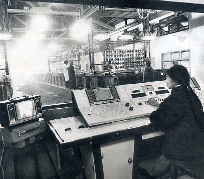 上海科技交流站队员和工人一起研究无线电遥控浇铸。