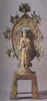 东魏武定六年金铜菩萨像,1986年寿阳县城关镇出土,高20厘米。该像是北朝晚期造像的代表作品。