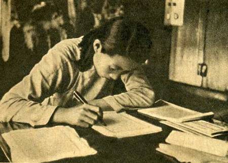 刘胡兰的母亲胡文秀经常收到各地人民的来信。这是胡文秀正在给各地来信的人写回信。