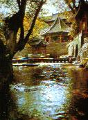 山西太原晋祠里的“鱼沼飞桥”是一座十字形的板桥,它象一只鸟展翅飞舞,相传是北宋时(公元十世纪—十二世纪)的建筑物。