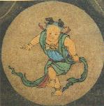 永乐宫拱眼壁壁画童子,绘于纯阳殿神龛內檐拱眼壁上。
