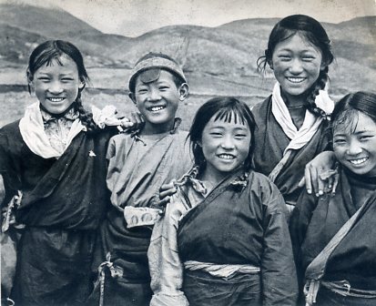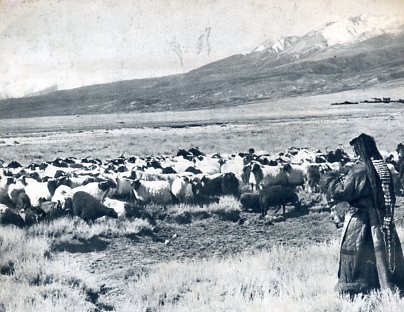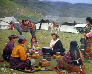 当了四十多年奴隶的索朗,过去家中没有一头牛羊。民主改革后,分得了三十二头牦牛和一匹马。这是索朗家在挤牛奶。