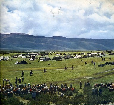 草原上欢乐的节日快到来了。从四面八方赶到中嘎多乡参加赛马大会的牧民,在草原上搭起了帐篷。