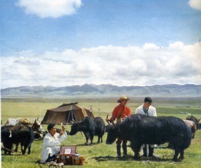 兽医工作者经常深入草原,为牧民的牲畜免费联治疾病。