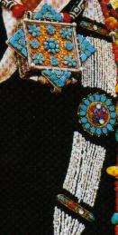 藏族妇女“巴戈巴珠”头饰。“巴珠”是贵夫人的华丽头饰,缀有大量的珍珠、宝石或珊瑚、松石。世袭贵夫人戴珍珠巴珠,普通贵夫人戴珊瑚巴珠。后藏的“巴戈巴珠”造型似一把大弓,弓形主体是用棉布浆模卷制而成,包裹红呢料,其上饰有珊瑚、松石和数千颗珍珠。大量珍珠串装饰的“巴戈巴珠”只有世袭贵夫人才能戴,是等级地位的象征。