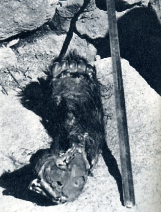 当地居民保存下来的所谓“雪人”(棕熊)的足趾。