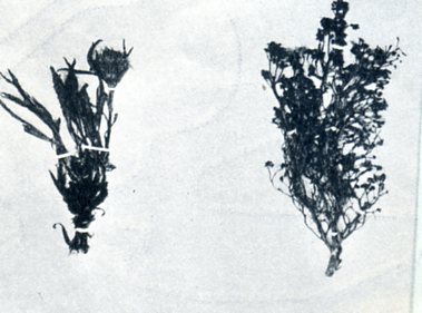 科学工作者在珠穆郎玛峰附近采集的植物标本,具腺凤毛菊(左)生长在海拔四千八百米处;雪线杜鹃花(右)生长在四千五百米。。