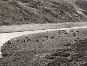 中国科学院青藏高原综合考察队的部分队员,宿营在恰尔多河谷。这里是很好的牧场。山岩下的植物是锦鸡儿。(1976年)