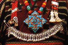 措美县 名胜古迹 人物典故 地方特产 “措美”,藏语意为湖下。因县驻地低于东北方向的热米湖而得名。公元1354年建哲古宗。噶厦政府又设达马溪,均隶洛喀基巧。1955年属山南办事处。1960年哲古宗、达玛溪,合并置哲古县,属山南专区。1965年改名措美县。1970年属山南地区。 邮编:856900 区号:0893 妇女背饰 氆氇 姑娘盛装。五彩氆氇小帽,花色氆氇衣袍,胸佩“嘎吾”银器等。脸上的白胶布也是一种装饰。 胸饰(局部)