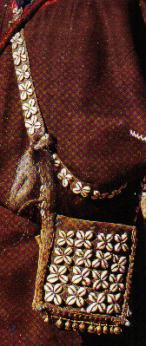 农区牧羊人服装。牛毛毡斗篷,贝壳装饰牛皮小包。