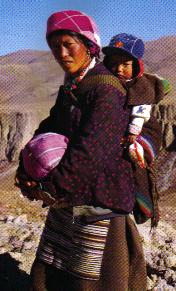 妇女服装,氆氇衣袍,外套汉装。