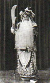 尚和玉(1873-1957)。宝坻人。他拜俞菊笙为师并从张玉贵学俞派武生戏。表演恪守俞氏风范,以功底扎实、功架稳健、威猛凝重着称。他要求武生表演必须具备“唱、念、做、打、翻”五个条件,达到“脆、狠、帅”三个标准。图为《金龙阵》中尚和玉饰关铃。