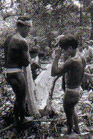 高山族雅美人男子装束。高山族雅美人聚居在兰屿岛,岛上气候炎热。雅美男子的传统装束十分简单,日常仅系一兜裆布,盛装时身穿无领无袖对襟上衣,头戴银盔帽。