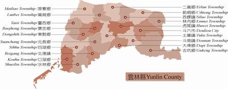 清光绪十三年((1887年)划嘉义东部、彰化南部始设云林县,属台湾府。因治县林杞埔原名云林坪,故名云林县。日占时,1920年分属台南州斗六、虎尾、北港3郡。1945年光复后郡改区,属台南县。1950年以斗六、虎尾、北港3区置云林县。