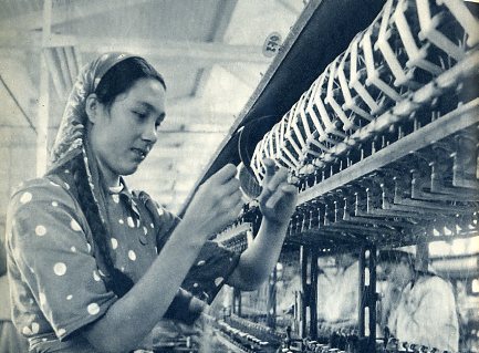 和阗缫丝厂维吾尔族女工吐尔逊尼牙孜汗,不久前还是一个农村姑娘。