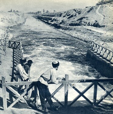 依干其水库十六公里长的干渠。这个新建的水库给十几万亩土地带来了生命。