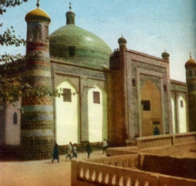 维吾尔族宗教领袖阿帕克合加的陵墓是南疆最著名的古迹之一,约建于十七世纪,解放前已部分倒塌,1956年政府曾拨款修整。
