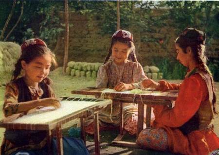 维吾尔族的男女老少都爱戴花帽,库车的妇女从小就学习绣制。